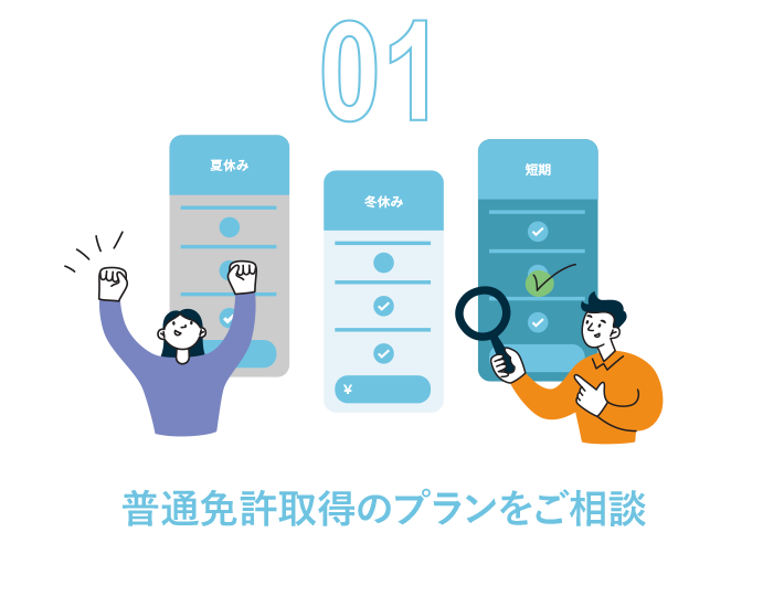 はじめての免許取得 普通免許(AT/MT)・二輪(小型~大型) 中型・準中型・大特 各種講習について 詳しく見る