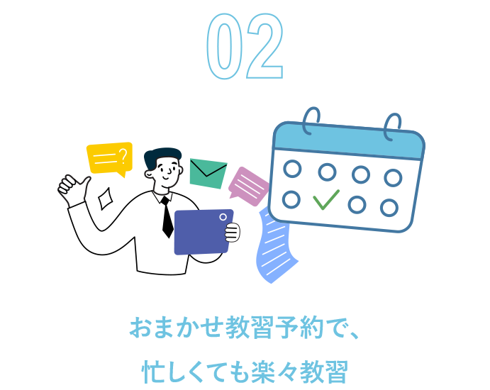 夜間や土曜日も教習していますので、ご自分の都合に合わせて教習が可能です 仕事で来られない場合は受付でご相談ください