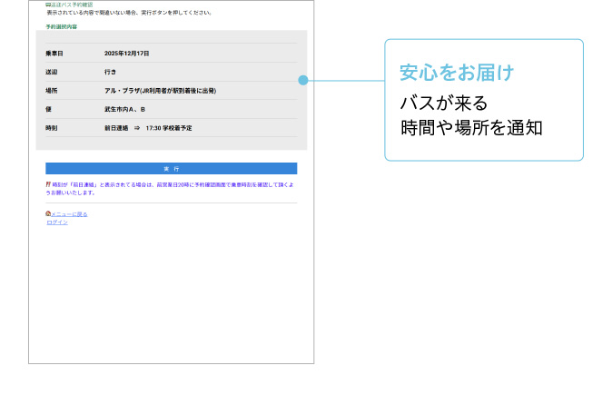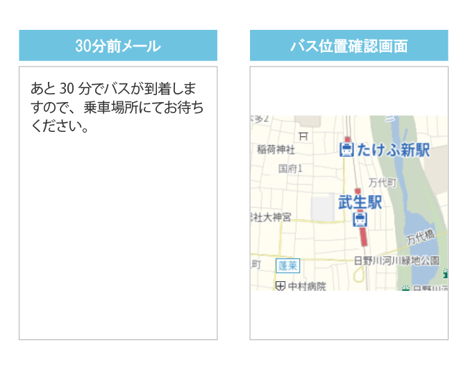 ・バスの到着30分前にメールが来るので安心(メール登録者のみ)