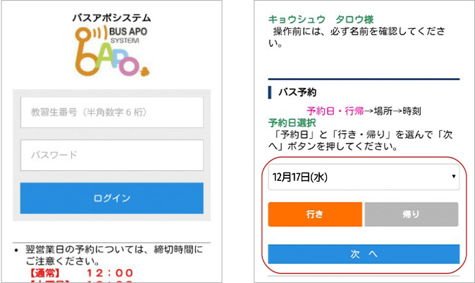携帯で簡単、送迎バス予約